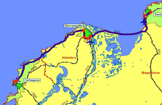 El proyecto consistió en caracterizar la demanda tanto de pasajeros como de carga para plantear una nueva conexión vial, diferente de la actual carretera, entre Cartagena y Santa Marta pasando por Barranquilla. Estas tres ciudades albergan los puertos marítimos más importantes de Colombia en la costa Caribe.